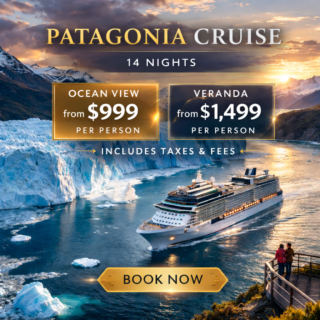 14 nights. 6 extraordinary destinations. One legendary ship. Glaciers, penguins, tango, the end of the world, and a private balcony to watch it all from, for under $3,000 total for two people, all taxes and fees included. Curated and exclusively priced by Wyta for adventurous travelers who know a great deal when they see one.